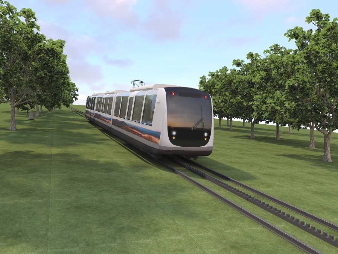 这样有轨电车便能克服黏着力不足的问题,在>20%的陡峭斜坡上运行,也可多节连挂,组成铰接车运行。